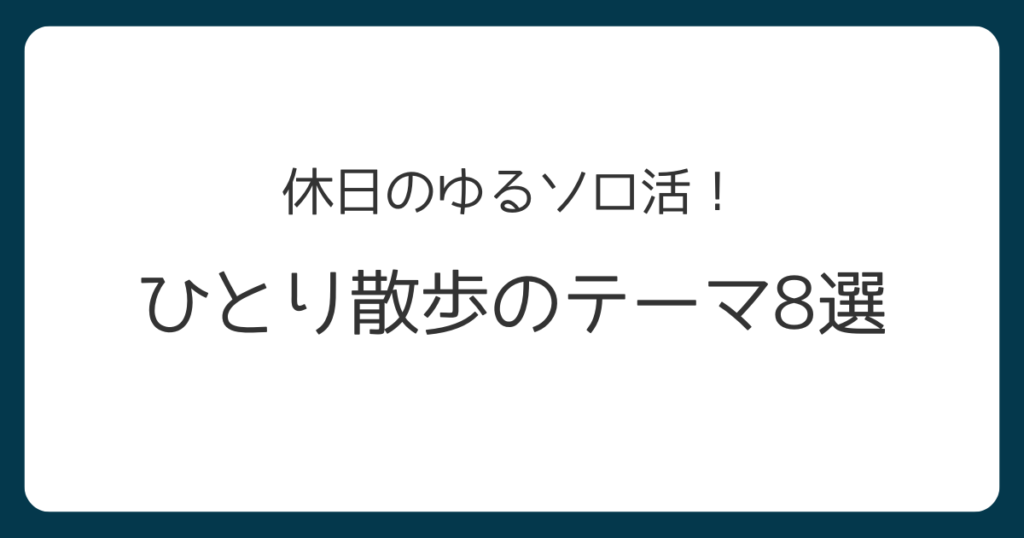 休日のゆるソロ活!ひとり散歩のテーマ8選